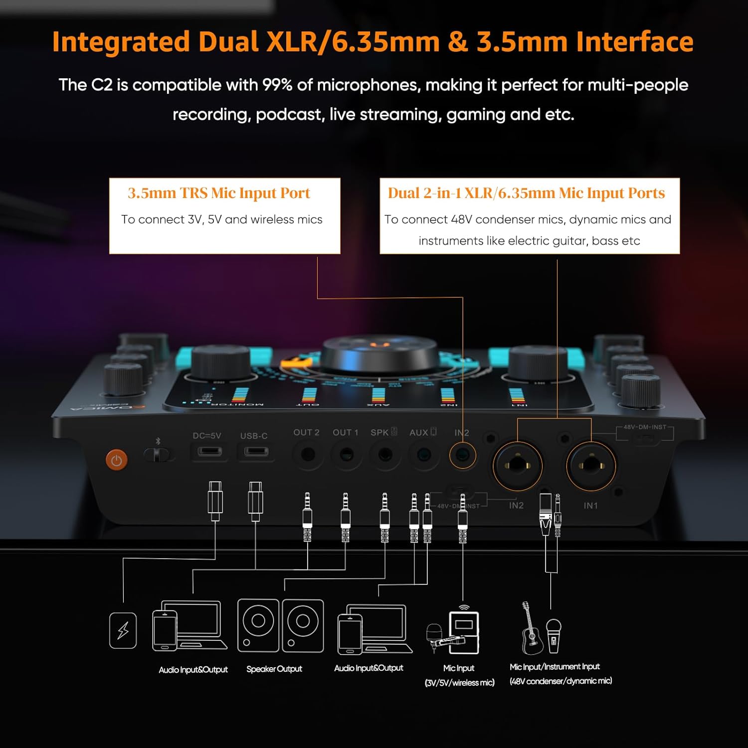 Streaming / Podcasting / Recording Multi-functional Audio Interface – ADCaster C2