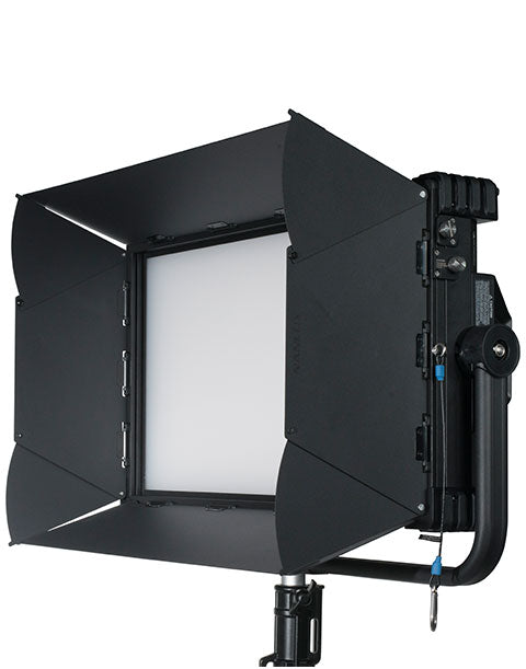 The Barndoors for Dyno 650C LED Light from NanLux have a 4-way design designed to control the fixture's output to light the areas you want to have illuminated while keeping light from the areas you don't by swinging one or more leaves into the light's beam.