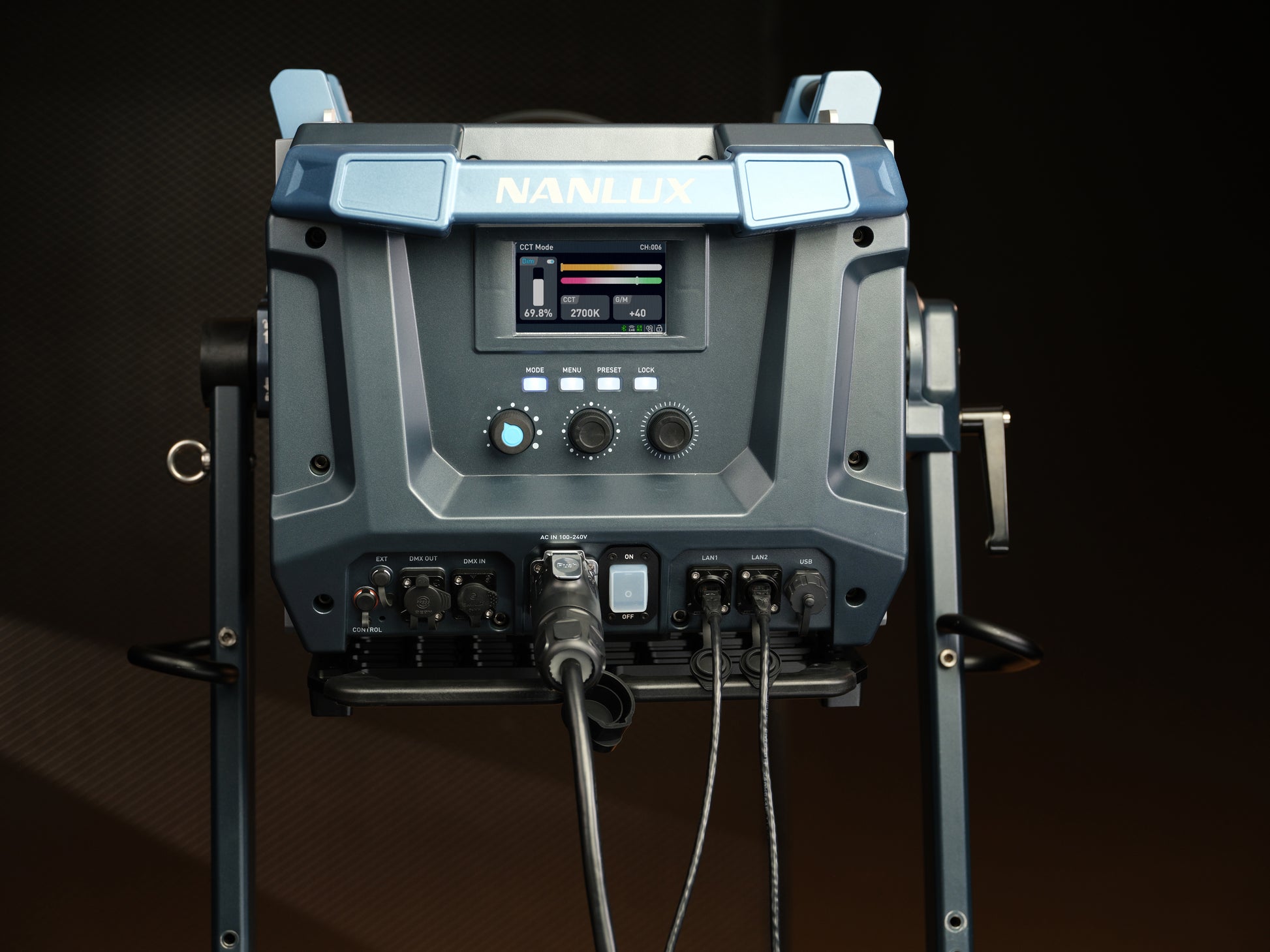 Nanlux Evoke 5000B– the world’s first 5000W Stormproof LED bi-color spotlight with Green/Magenta adjustment